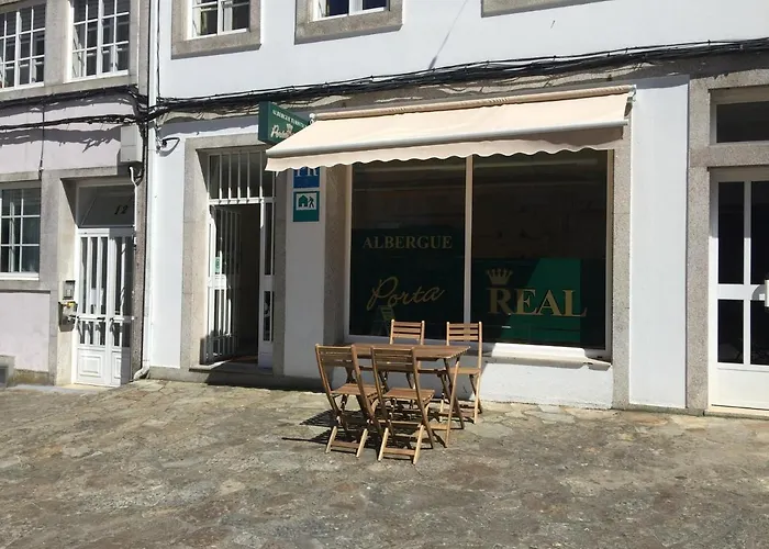 Pousada Albergue Porta Real No Bike Storage está localizado a 14 minutos a pé do Convento de São Francisco do Val de Deus e dispõe de solário e terraço ensolarado para os hóspedes se divertirem. Com Wi-Fi na propriedade, este hostel está localizado a uma caminhada do Centro Galego de Arte Contemporânea.